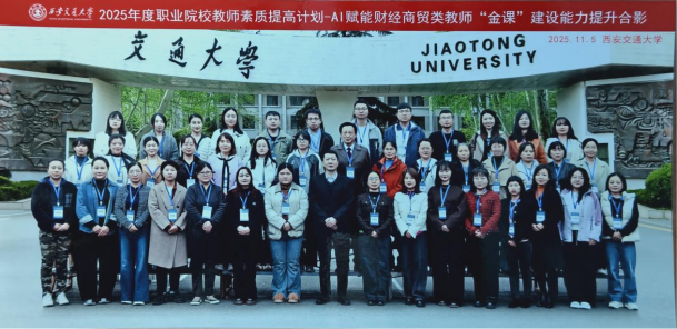 本次研修由西安交通大学全国重点建设职教师资培养培训基地主办,为期10天。期间,来自全省30余所院校的46名教师围绕智能技术与财经商贸专业教学融合、“金课”建设路径优化等核心议题展开深入研讨,系统学习了AI工具在课程设计、教学实践中的应用方法,为后续推动学院财经类课程数字化升级奠定了坚实基础。