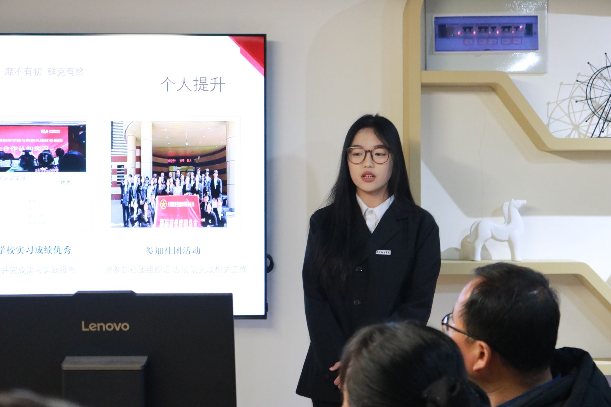 评选活动伊始,刘一坤宣读本次评选流程,明确各环节时间节点与评分标准;评审组确认参评学生名单及材料完整性,现场公示评分细则,确保评选全程规范透明。参与评审的同学们依次向各评委进行个人展示:于佩瑶围绕专业成绩排名、学科竞赛获奖经历展开阐述,同步展示了参与企业实习的实践报告;李彤结合志愿服务时长、班级工作成果,展现了综合素质的多元积累;郝云萌、蒋乐涵、袁媛则分别从学业精进、技能考证、团队协作等维度,详细汇报了自身优势。