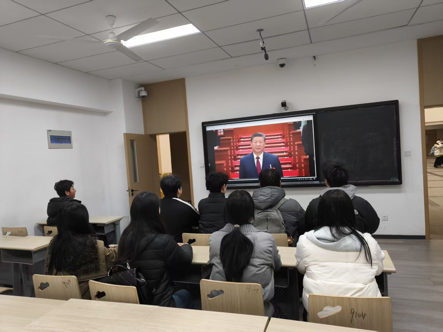 活动伊始,经济与管理学部团委书记闫斌作简短动员。明确学习两会精神的重要意义,强调青年群体要主动关注国家发展大局、勇担时代使命。随后组织全体成员进行集中观看开幕会直播盛况,观看期间,全体学生干部标注会议要点,梳理核心信息,现场学习氛围浓厚。团学干部们积极表态:“作为新时代青年,看到国家的强大,我们倍受鼓舞。未来我们将把个人成长融入国家发展,以实际行动践行青年担当。”