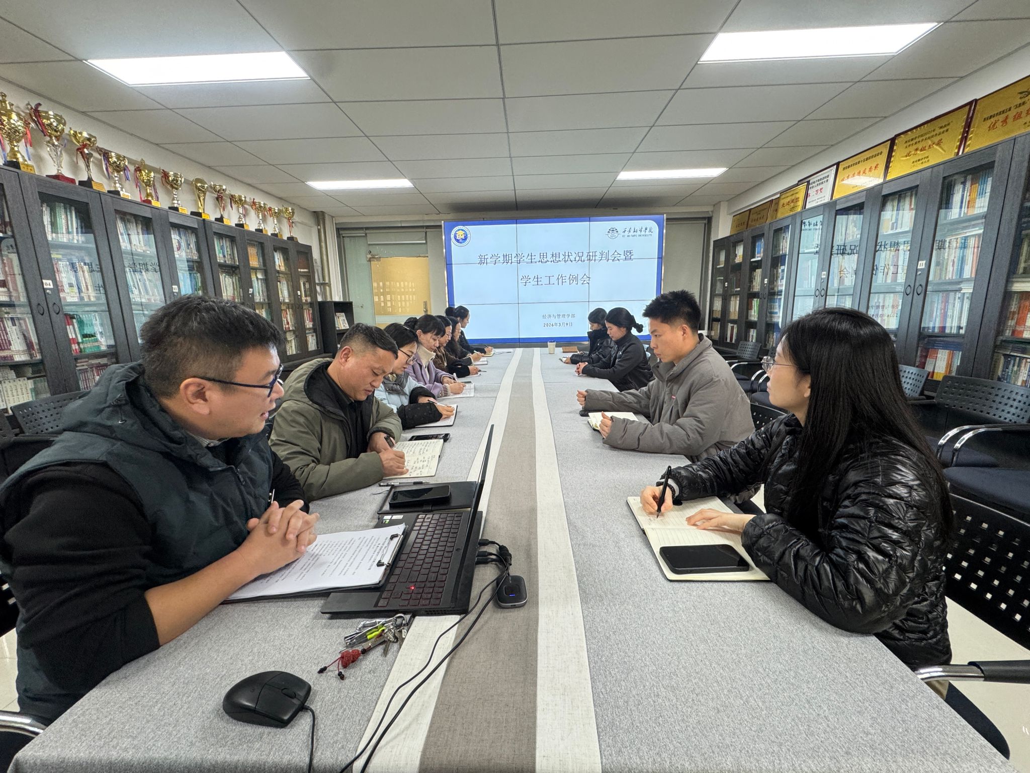 2026 年 3 月 9 日,经济与管理学部召开新学期学生思想状况研判会暨学生工作例会。学部综合办副主任胡松武及全体辅导员、学生工作相关人员参会。