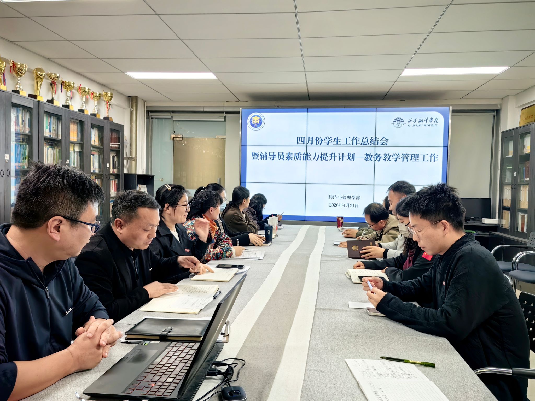 为系统梳理四月份学生工作成效,精准部署后续工作重点,进一步压实工作责任、提升工作质效,4月22日,经济与管理学部召开四月份学生工作总结会。分党委书记康劭洋、综合办副主任胡松武及全体辅导员参加会议,会议由胡松武主持。